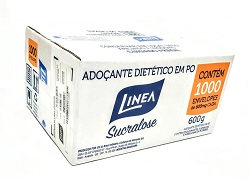 Adoçante Sachê Sucralose em Pó Caixa com 1000 Envelopes de 0,6g Linea. Os produtos Linea são desenvolvidos sem adição de açúcar e gordura, e com baixo teor de sódio, resultando em uma linha completa de produtos saudáveis e com grande redução calórica.Os Adoçantes a base de sucralose (derivado da cana-de-açúcar) ,possui delicioso sabor do açúcar. Não deixa residual amargo, comum em outros adoçantes. Pode ser utilizado por toda família, inclusive portadores de diabetes e fenilcetonúricos.Composição: Lactose, antiumectante dióxido de silício, edulcorantes artificiais: sucralose e acesulfame-K. não contém glúten.Recomendações de uso:Para cada envelope equivale ao poder adoçante de 2 colheres (chá) de açúcar e contém 3 kcal (calorias). Por isso faça dosagem moderadamente.