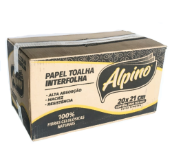 Papel toalha interfolha 100% celulose virgem, com folhas macias de alta absorção, caixa com 2000 folhas de 21 cm x 20 cm.